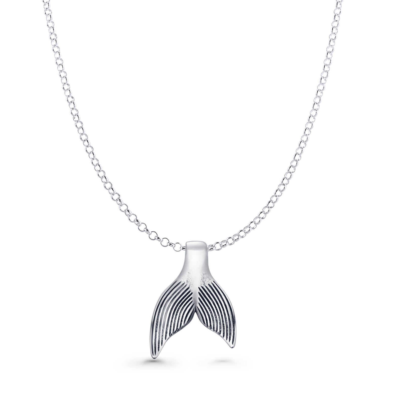 Whale Tail Pendant Rolo Chain Necklace Oxidized 925 Sterling Silver